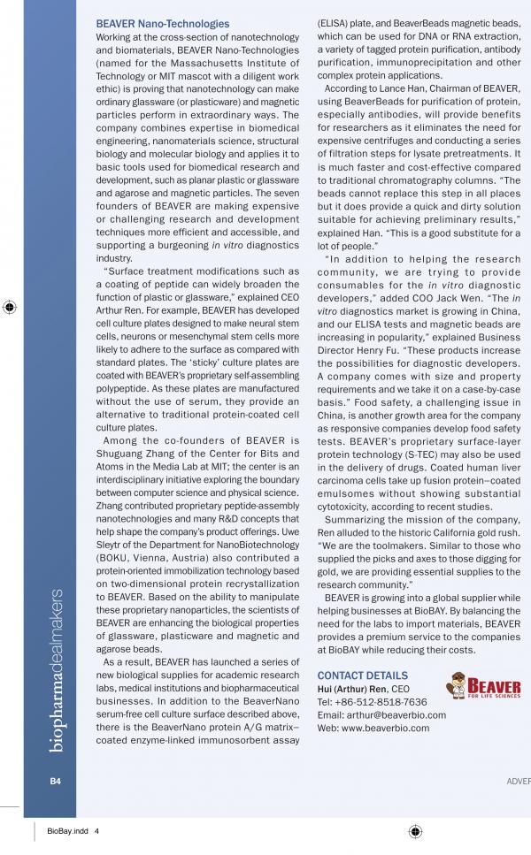 2014年3月,世界知名科學(xué)雜志《自然》(Nature)子刊——Nature Biotechnology (volume 32 no. 2 february 2014) 、Nature Reviews Drug Discovery (february 2014 volume 13 no.2) 對(duì)蘇州生物納米園(Biobay)以及公司首席基因研發(fā)工程師賴增楊進(jìn)行了專題報(bào)道,海貍公司作為納米園創(chuàng)新型生物醫(yī)藥企業(yè),以其強(qiáng)大、專業(yè)的研發(fā)團(tuán)隊(duì)、國(guó)際領(lǐng)先的核心技術(shù)、可靠的產(chǎn)品品質(zhì)保障,有幸接到邀請(qǐng),并接受了Nature雜志的專訪。