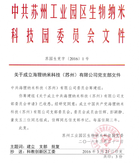 中國共產(chǎn)黨從誕生到今天,已經(jīng)走過了95年波瀾壯闊的奮斗歷程,蘇州作為一片有著光榮革命傳統(tǒng)的熱土,在黨的領(lǐng)導(dǎo)下也發(fā)生了翻天覆地的變化。今年是“十三五”開局之年,也是推進(jìn)供給側(cè)結(jié)構(gòu)性改革的攻堅之年,創(chuàng)新實干將是蘇州發(fā)展的新基調(diào)。海貍納米科技正是海歸黨員任輝響應(yīng)國家創(chuàng)新實干的號召回國創(chuàng)辦的高科技創(chuàng)新企業(yè)。公司創(chuàng)建之初不到10個人創(chuàng)業(yè)團(tuán)隊中,有6人是共產(chǎn)黨員,經(jīng)過5年的發(fā)展,海貍在今年初獲得了建立黨支部的批復(fù),目前公司黨員人員數(shù)已占到總?cè)藬?shù)的30%。