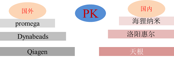 常用的磁珠法DNA提取試劑盒,目前主要為國外產(chǎn)品,例如Promega, Roche, DynaBeads,Qiagen等,且大多需要與專用儀器配套使用。